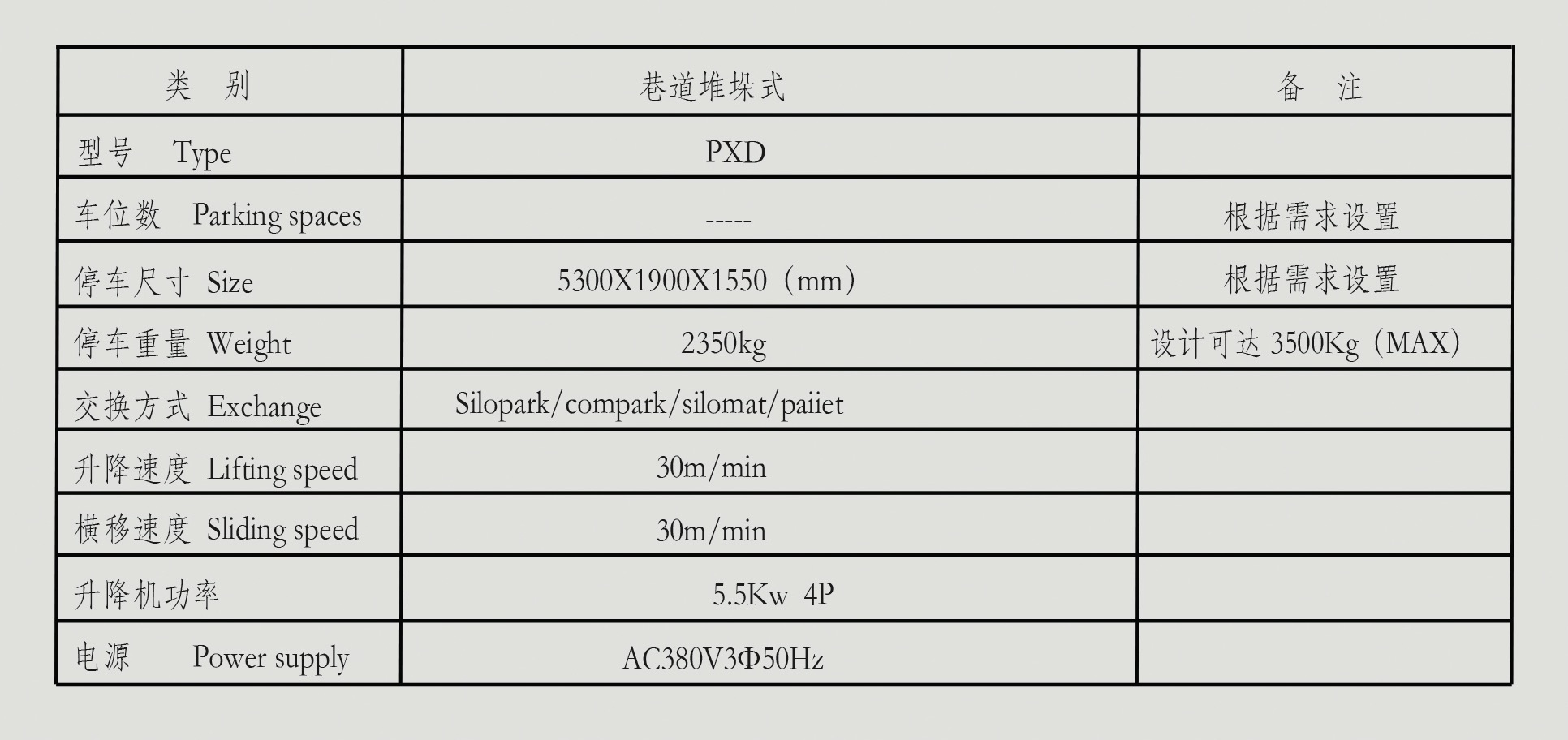 該停車設備采用巷道堆垛機將進到搬運器的車輛水平且垂直移動 到存車位,并用存取機構存取車輛的停車設備。